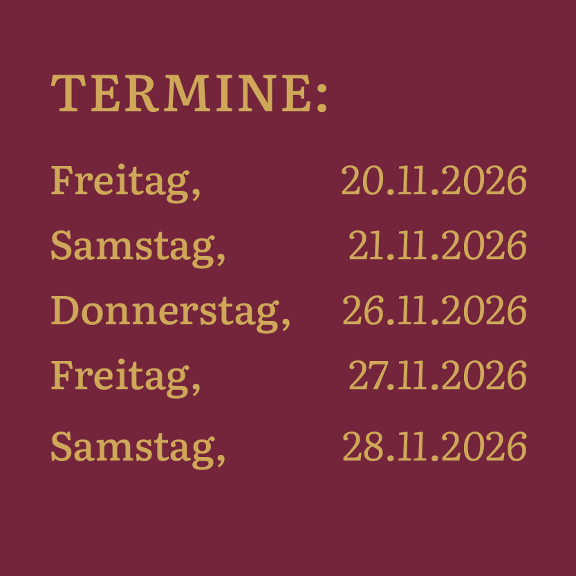 Ein Abend für anspruchsvolle Privatgäste als auch für Unternehmen, die Ihren Mitarbeitenden eine außergewöhnliche Weihnachtsfeier bieten möchten.Tickets sind hier verfügbar. Das Kontingent ist auf 300 Plätze pro Abend limitiert. Wir empfehlen ein frühzeitige Buchung.
